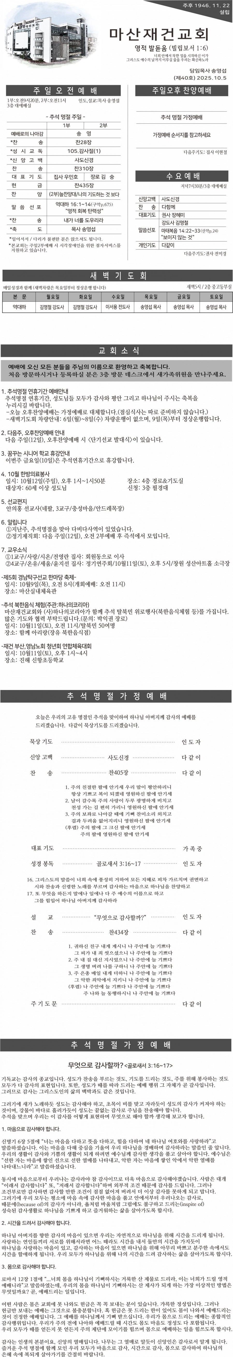 2025년10월5일 교회주보 페이지 정보 작성자 마산재건교회 댓글 0건 조회 220회 작성일 25-10-04 16:50 본문 . 목록 이전글2025년10월12일 교회주보 25.10.11 다음글2025년9월28일 교회주보 25.09.27 댓글목록 댓글목록 등록된 댓글이 없습니다.
