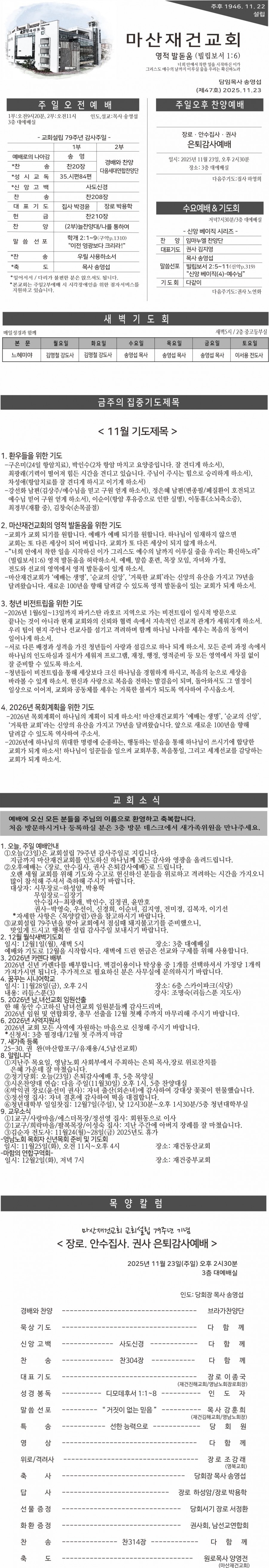 2025년11월23일 교회주보 페이지 정보 작성자 마산재건교회 댓글 0건 조회 220회 작성일 25-11-22 17:23 본문 . 목록 이전글2025년11월30일 교회주보 25.11.29 다음글2025년11월16일 교회주보 25.11.15 댓글목록 댓글목록 등록된 댓글이 없습니다.