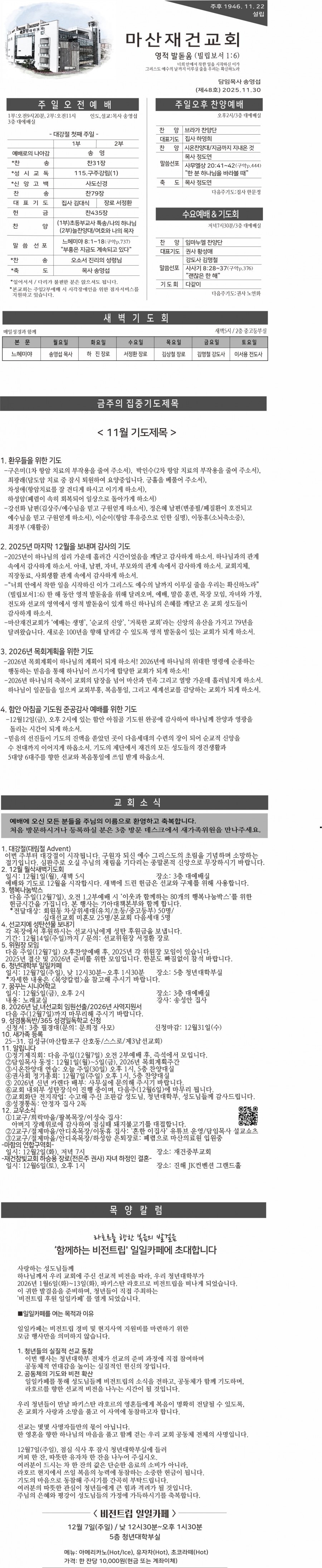 2025년11월30일 교회주보 페이지 정보 작성자 마산재건교회 댓글 0건 조회 189회 작성일 25-11-29 17:44 본문 . 목록 이전글2025년12월7일 교회주보 25.12.06 다음글2025년11월23일 교회주보 25.11.22 댓글목록 댓글목록 등록된 댓글이 없습니다.