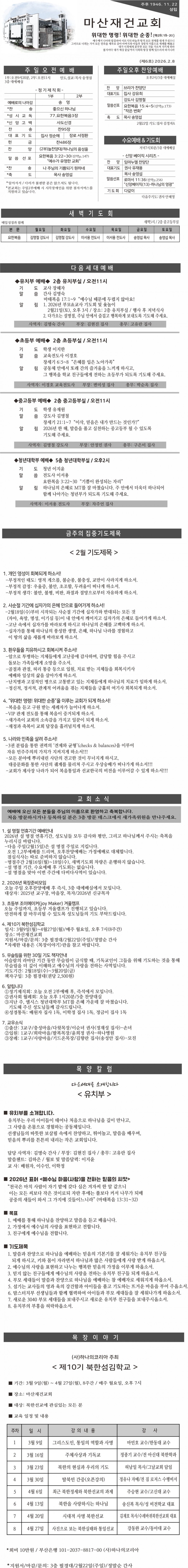 2026년2월8일 교회주보 페이지 정보 작성자 마산재건교회 댓글 0건 조회 104회 작성일 26-02-07 17:45 본문 . 목록 다음글2026년2월1일 교회주보 26.01.31 댓글목록 댓글목록 등록된 댓글이 없습니다.