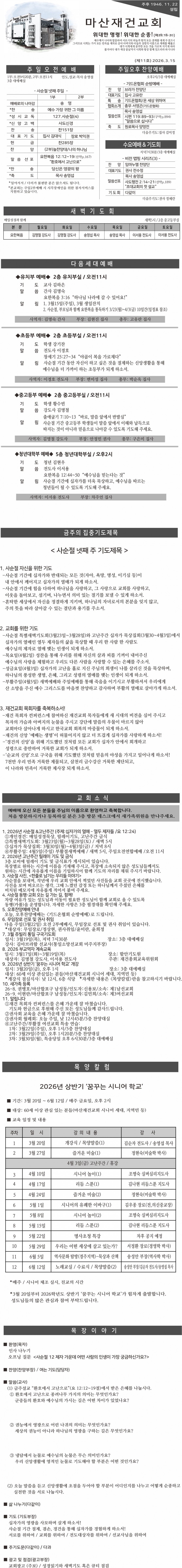 2026년3월15일 교회주보 페이지 정보 작성자 마산재건교회 댓글 0건 조회 163회 작성일 26-03-14 18:13 본문 . 목록 이전글2026년3월22일 교회주보 26.03.21 다음글2026년3월8일 교회주보 26.03.07 댓글목록 댓글목록 등록된 댓글이 없습니다.