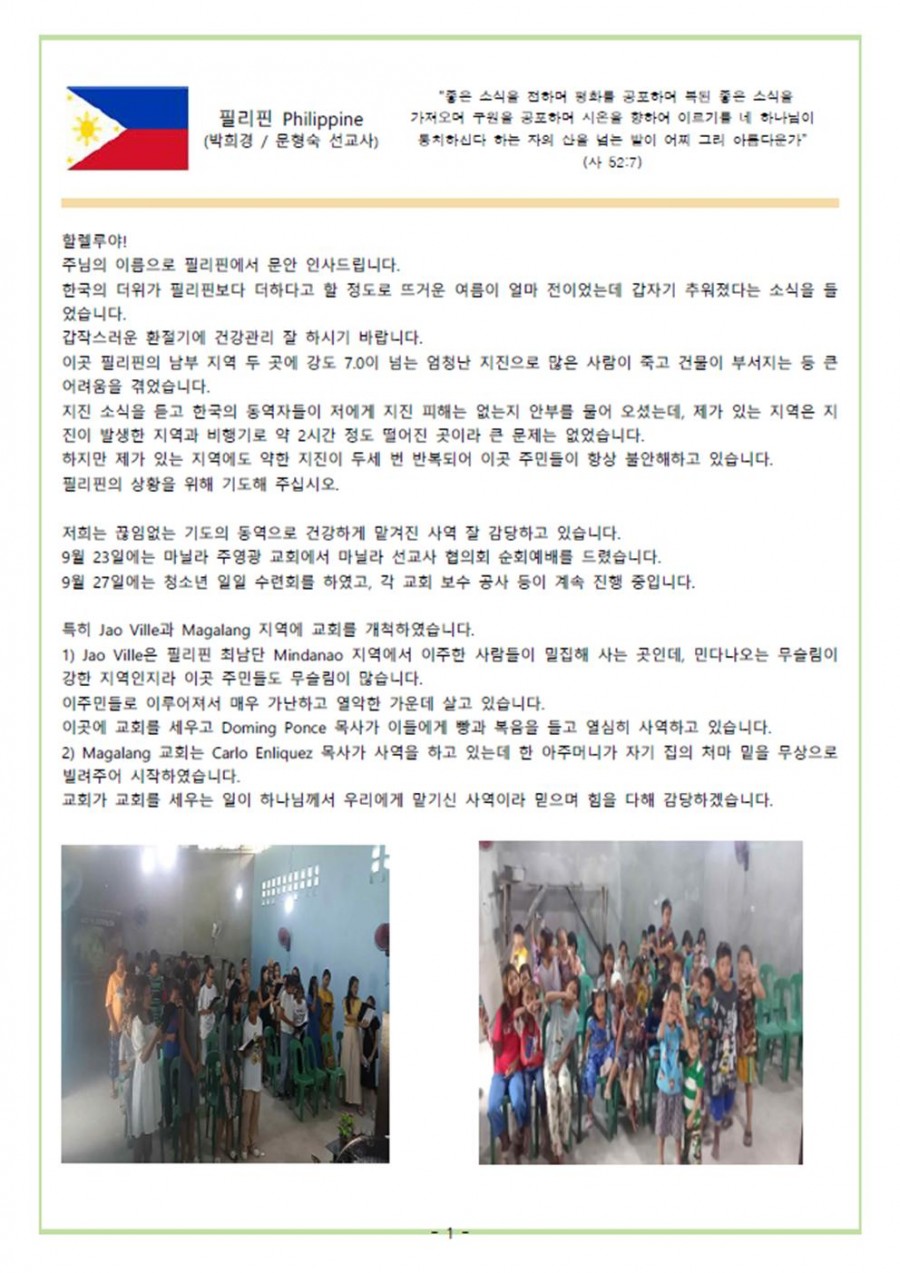 박희경 선교사(필리핀,후원: 1교구/사랑마을/나사로목장) 페이지 정보 작성자 마산재건교회 댓글 0건 조회 13회 작성일 25-10-24 14:33 본문 . 목록 다음글새생명가정연구원 기독상담센터 25.10.17 댓글목록 댓글목록 등록된 댓글이 없습니다.
