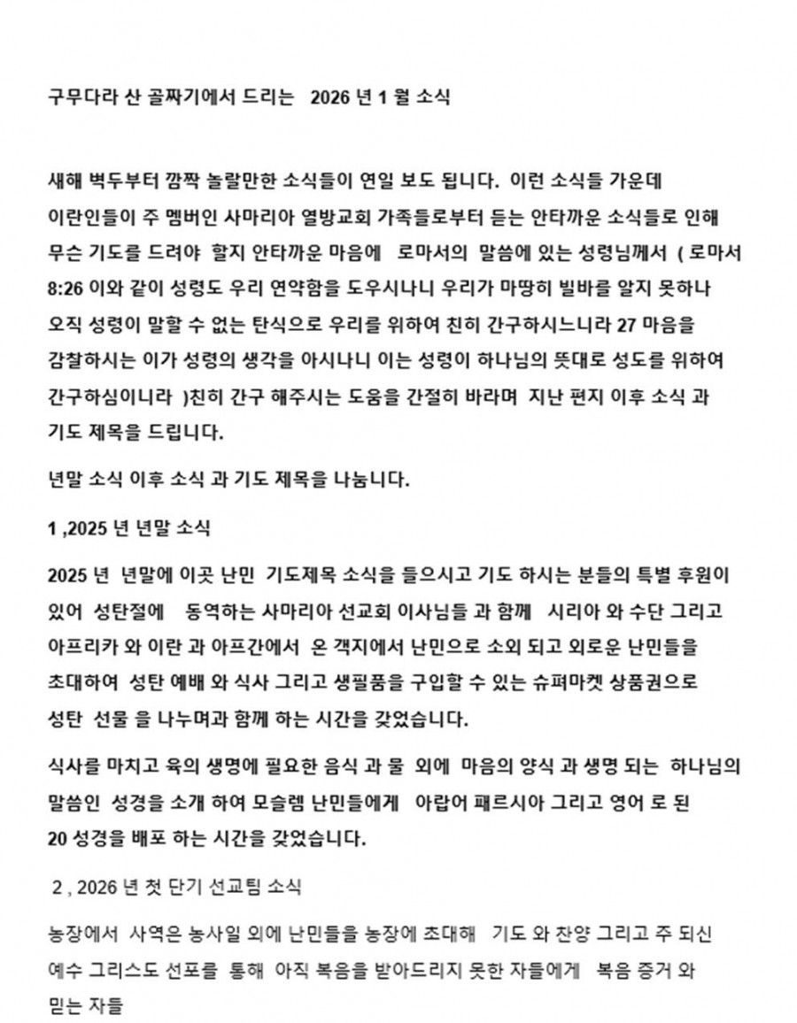 양용태 선교사(그리스, 후원: 1교구/희락마을/베드로 목장) 페이지 정보 작성자 마산재건교회 댓글 0건 조회 17회 작성일 26-01-24 18:44 본문 . 목록 이전글강호춘 선교사(독일, 후원: 1교구/사랑마을/빌레몬목장) 26.02.12 다음글안의홍 선교사(네팔, 후원: 3교구/충성마을/안드레목장) 26.01.17 댓글목록 댓글목록 등록된 댓글이 없습니다.