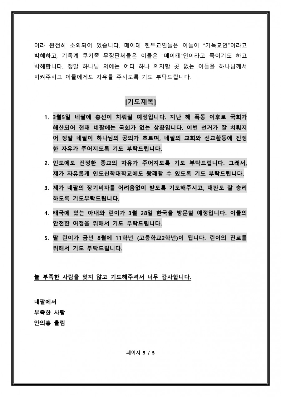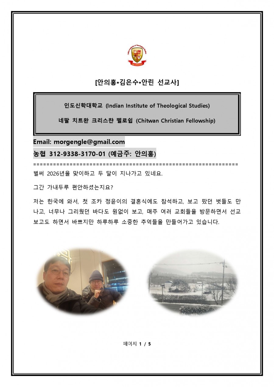 안의홍 선교사(네팔, 후원: 3교구/충성마을/안드레목장) 페이지 정보 작성자 마산재건교회 댓글 0건 조회 18회 작성일 26-03-14 12:32 본문 . 목록 이전글최한철 선교사(영국 웨일즈, 후원: 4교구/온유마을/세움목장) 26.03.14 다음글정기철 선교사(영국, 후원:2교구/사랑마을/기드온목장) 26.03.14 댓글목록 댓글목록 등록된 댓글이 없습니다.