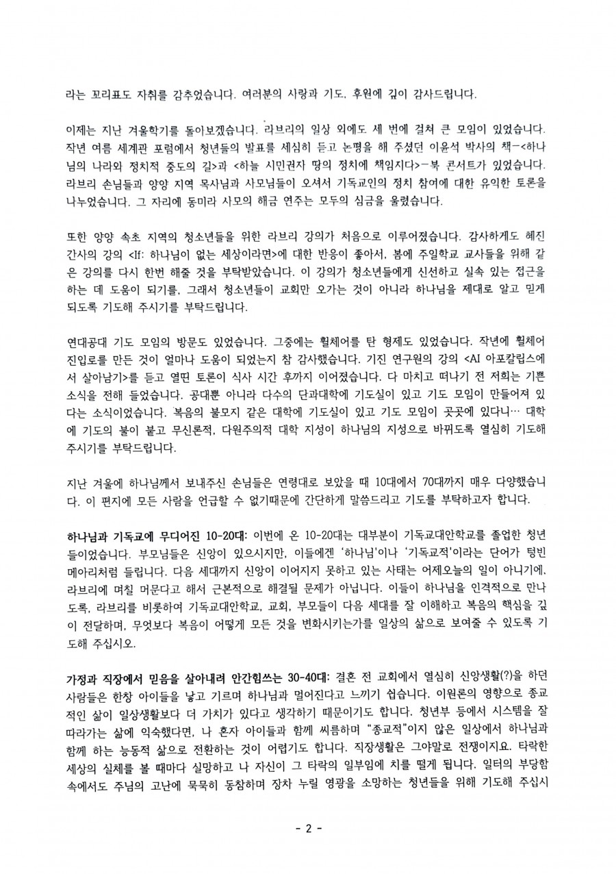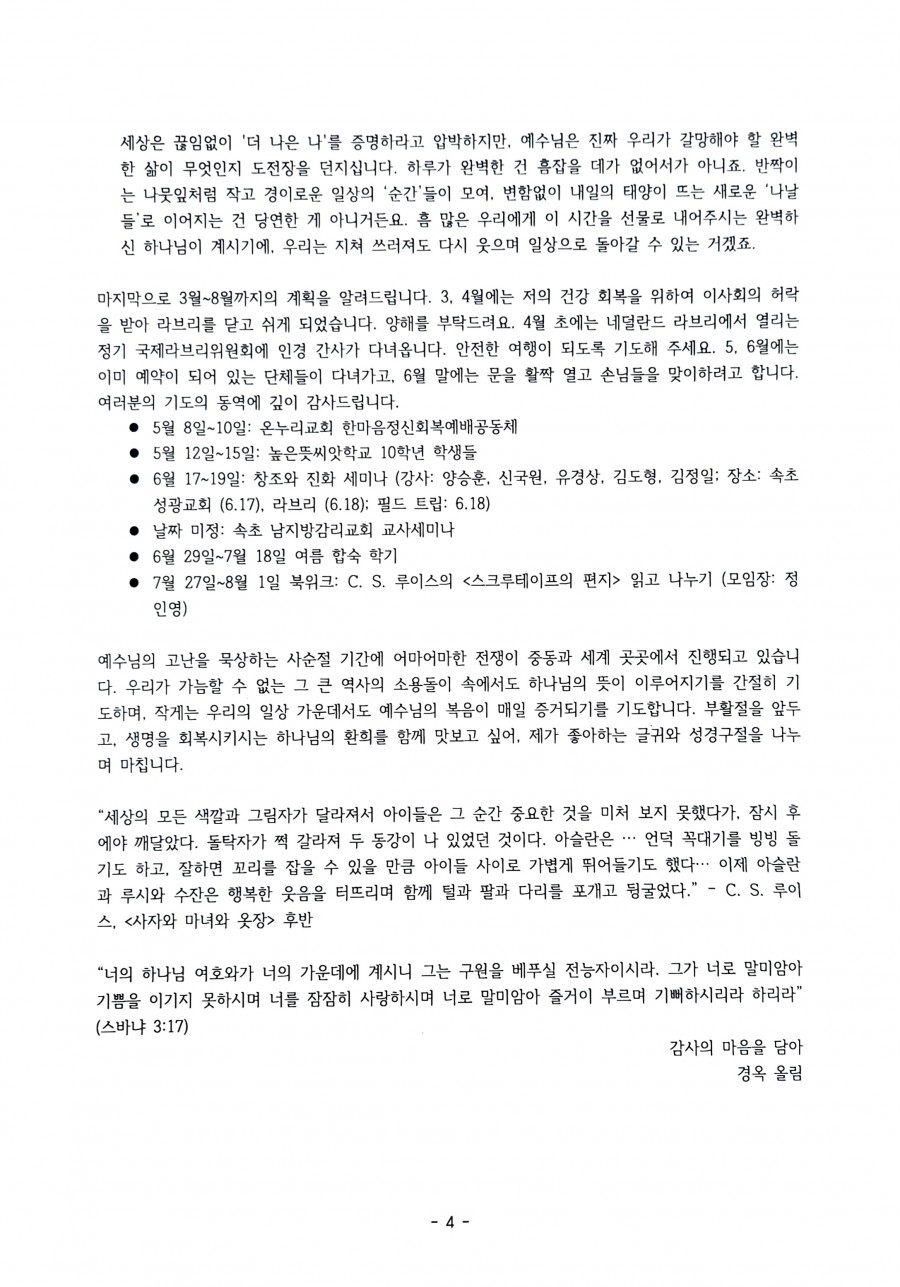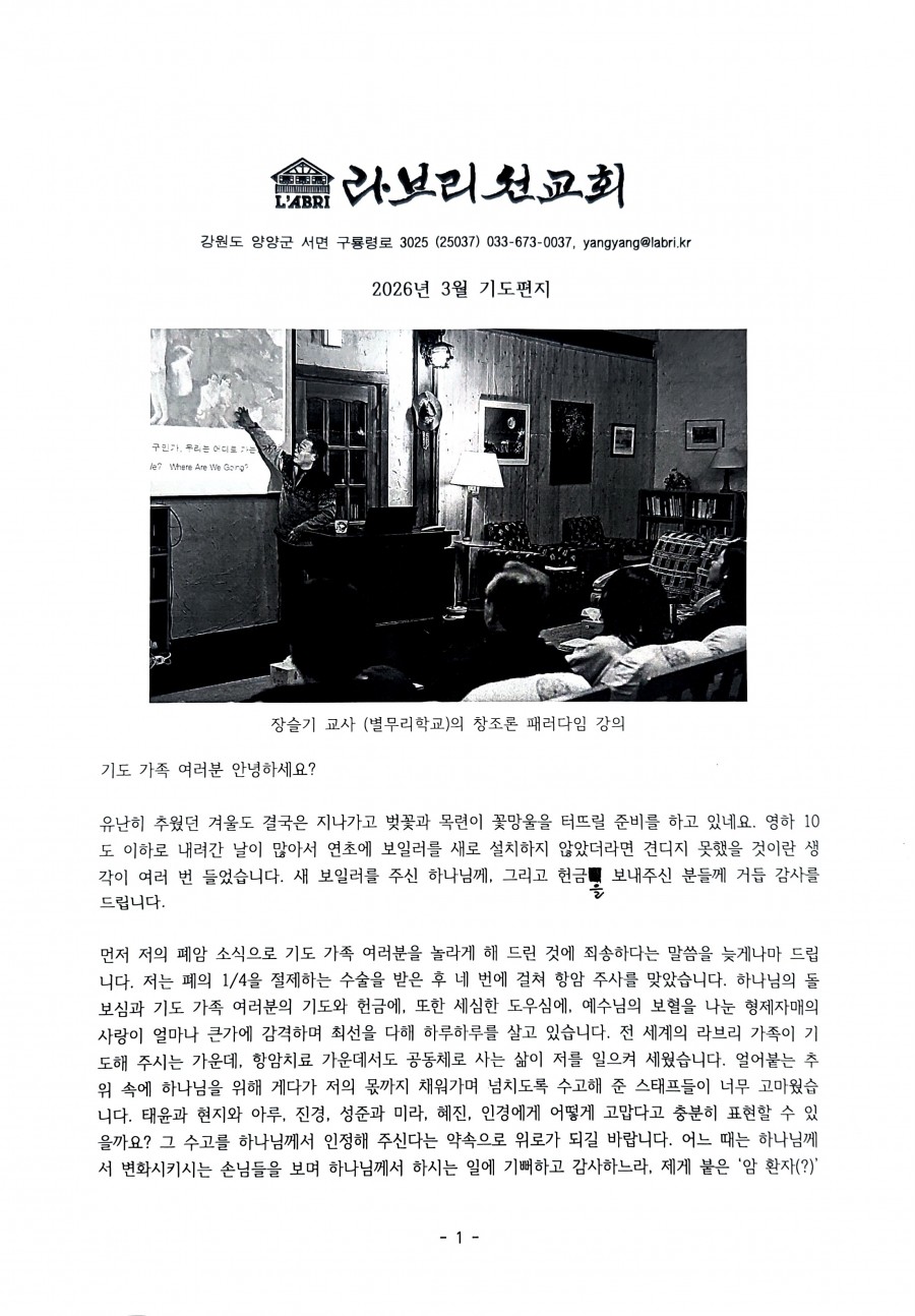 라브리선교회(후원: 2교구/사랑마을/시온1목장) 페이지 정보 작성자 마산재건교회 댓글 0건 조회 9회 작성일 26-03-19 05:42 본문 . 목록 다음글GMTC(선교훈련원) 2월 감사편지 26.03.14 댓글목록 댓글목록 등록된 댓글이 없습니다.