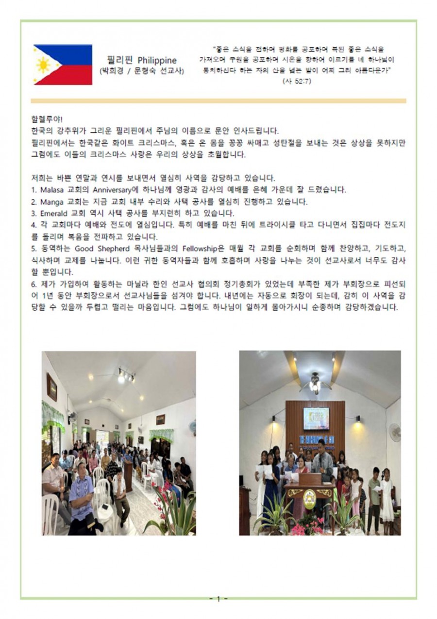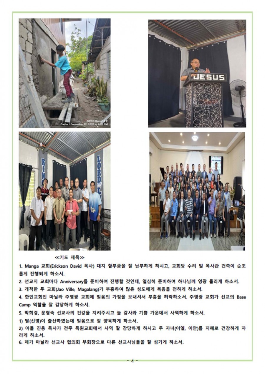 박희경 선교사(필리핀,후원: 1교구/사랑마을/나사로목장) 페이지 정보 작성자 마산재건교회 댓글 0건 조회 64회 작성일 26-01-08 17:48 본문 . 목록 다음글라브리선교회(후원: 1교구/사랑마을/시온목장) 26.01.07 댓글목록 댓글목록 등록된 댓글이 없습니다.