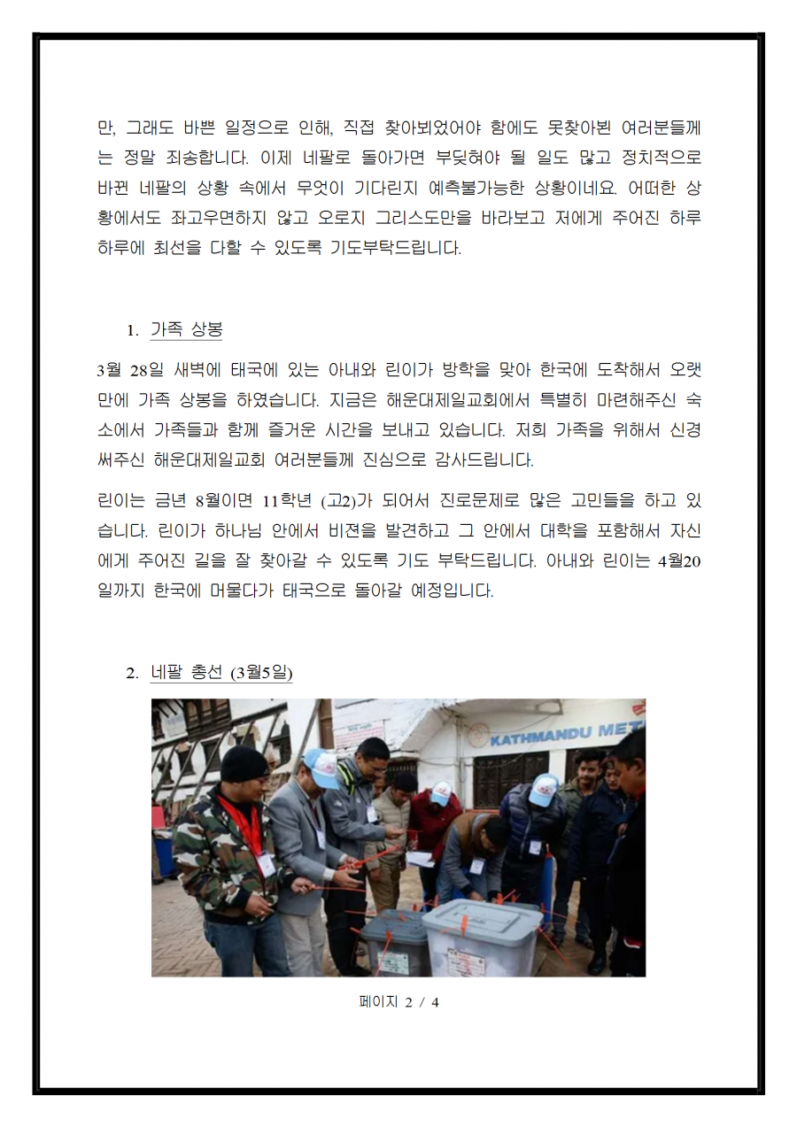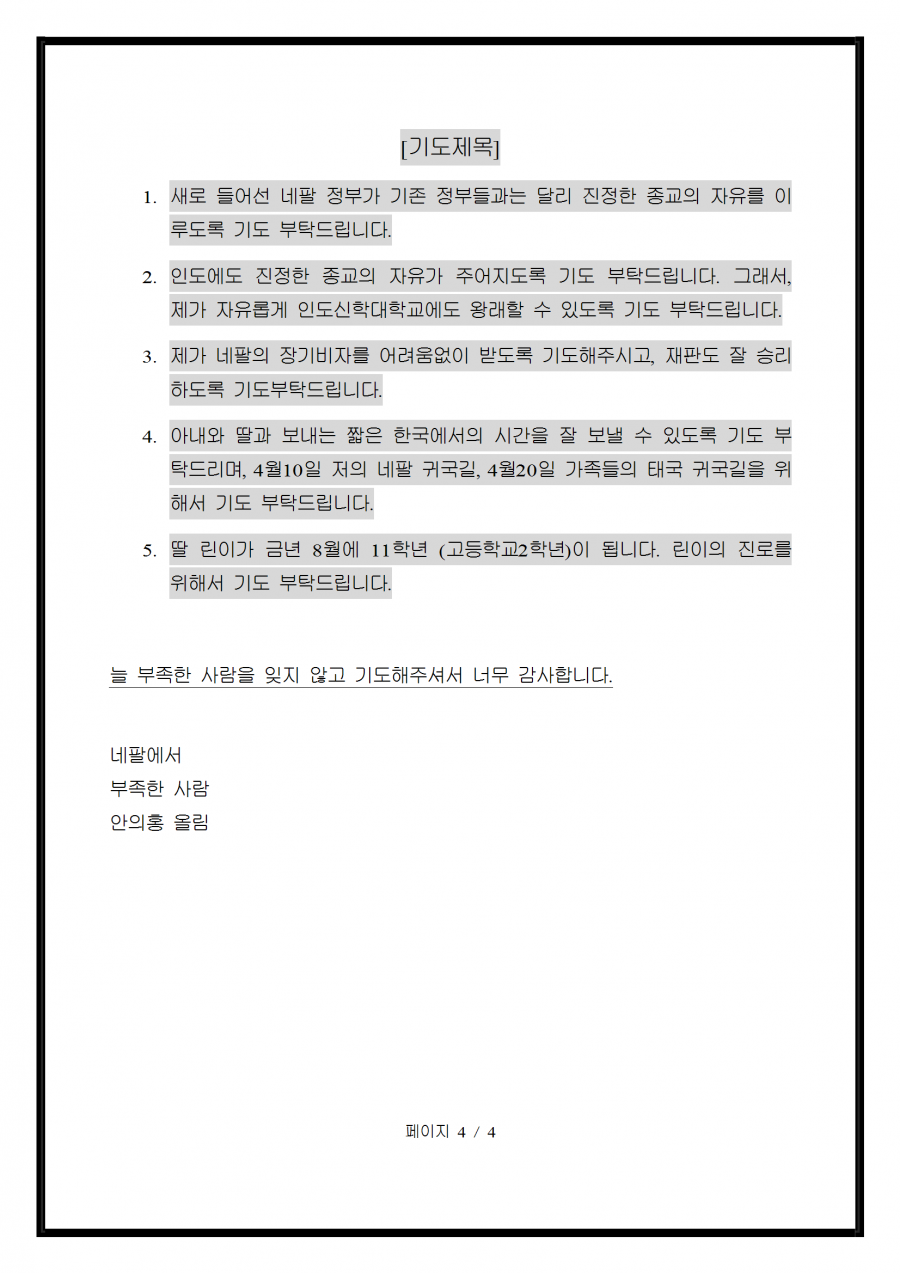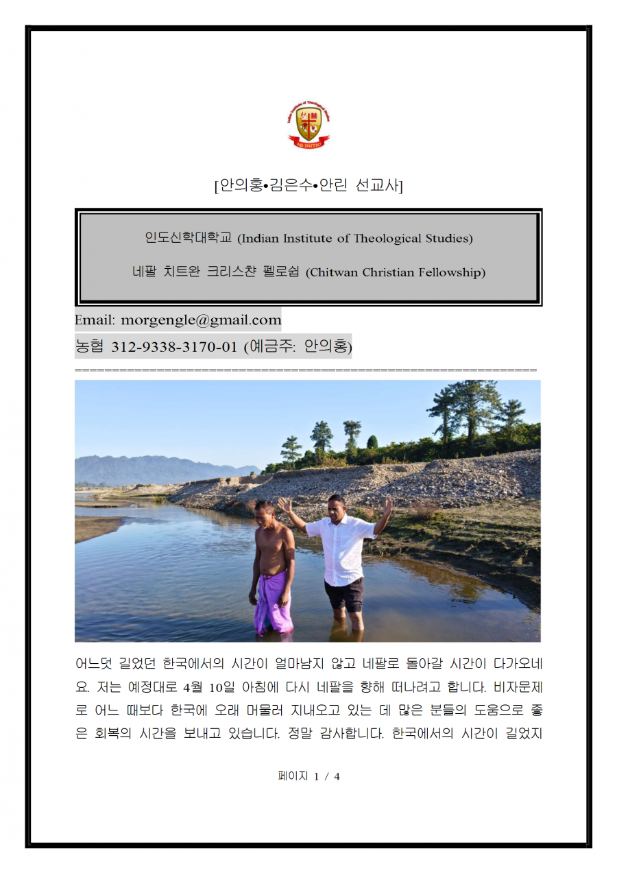 안의홍 선교사(네팔, 후원: 3교구/충성마을/안드레목장) 페이지 정보 작성자 마산재건교회 댓글 0건 조회 22회 작성일 26-03-31 19:44 본문 . 목록 이전글강호춘 선교사(독일, 후원: 1교구/희락마을/빌레몬목장) 26.04.07 다음글라브리선교회(후원: 2교구/사랑마을/시온1목장) 26.03.19 댓글목록 댓글목록 등록된 댓글이 없습니다.